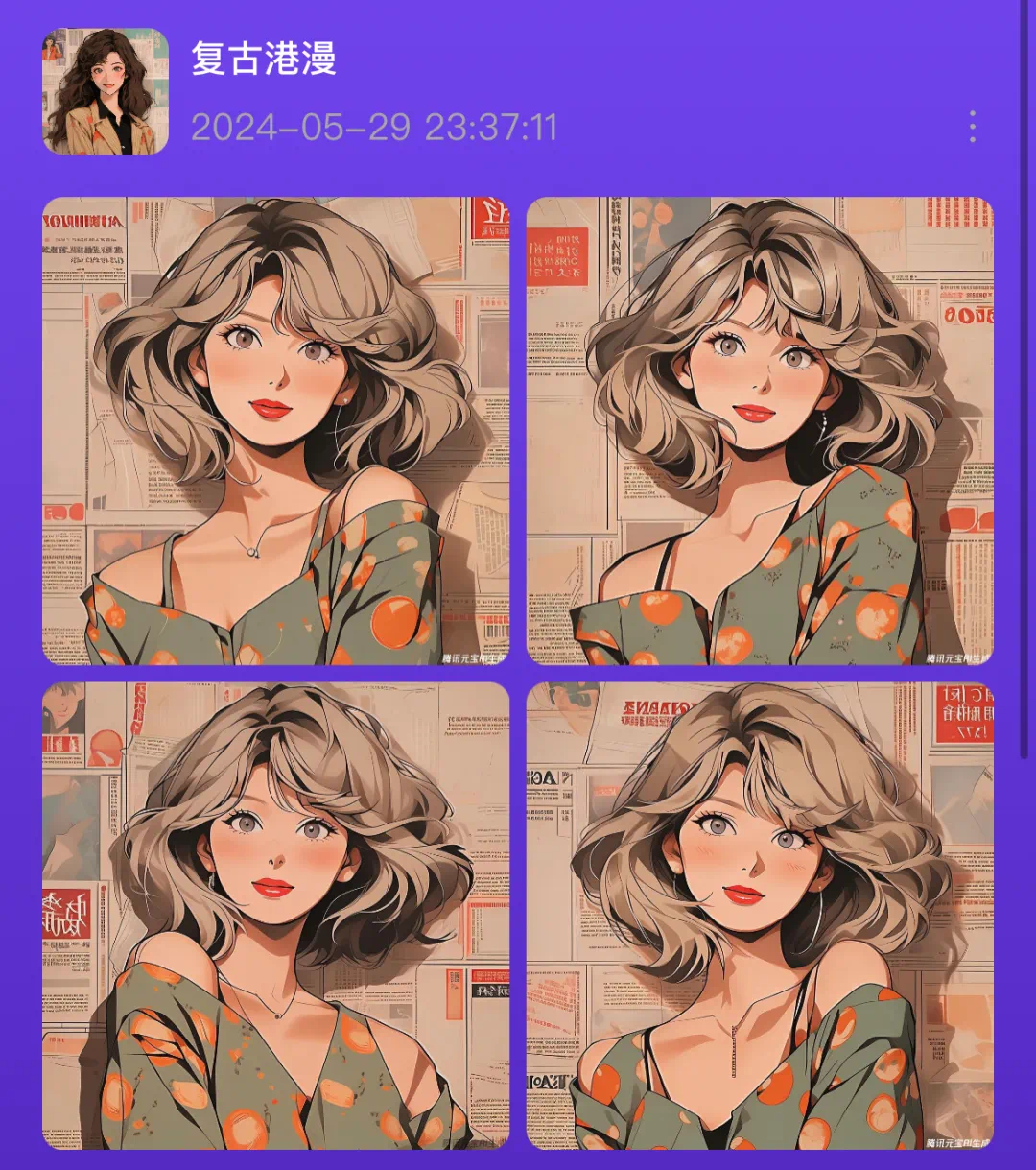 该功能还提供芭比、多巴胺、复古繁花、白领精英等 12 种风格,我们选择「复古港漫」风格,然后上传一张霉霉的照片。