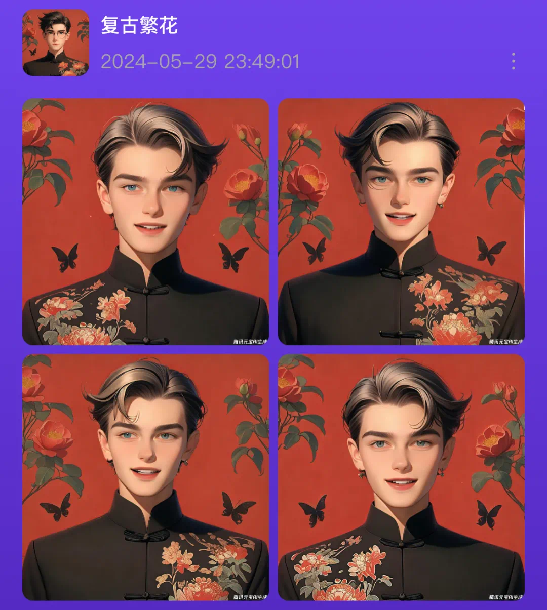 此外,面对眼花缭乱的智能体,腾讯元宝还制作了首发精选榜单,创意绘画、百变 AI 头像、口语陪练、创意贴贴贴、超能翻译官这 5 款智能体入选。