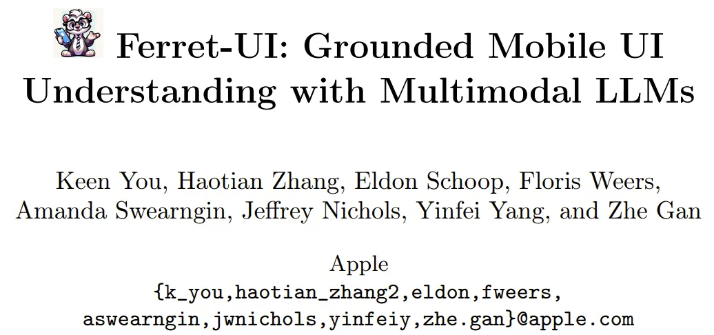 多模态大型语言模型(MLLM)为这一方向的发展带来了新的可能性。近日,苹果公司一个团队提出了 Ferret-UI。