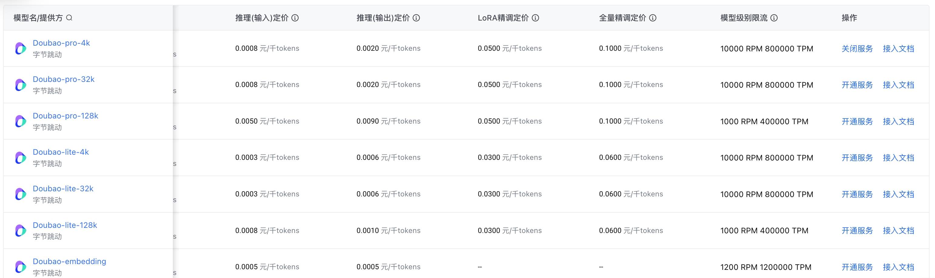 附:火山引擎官网的模型服务价格文档https://www.volcengine.com/docs/82379/1099320