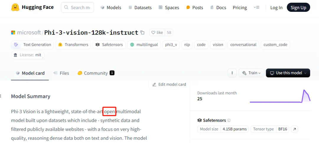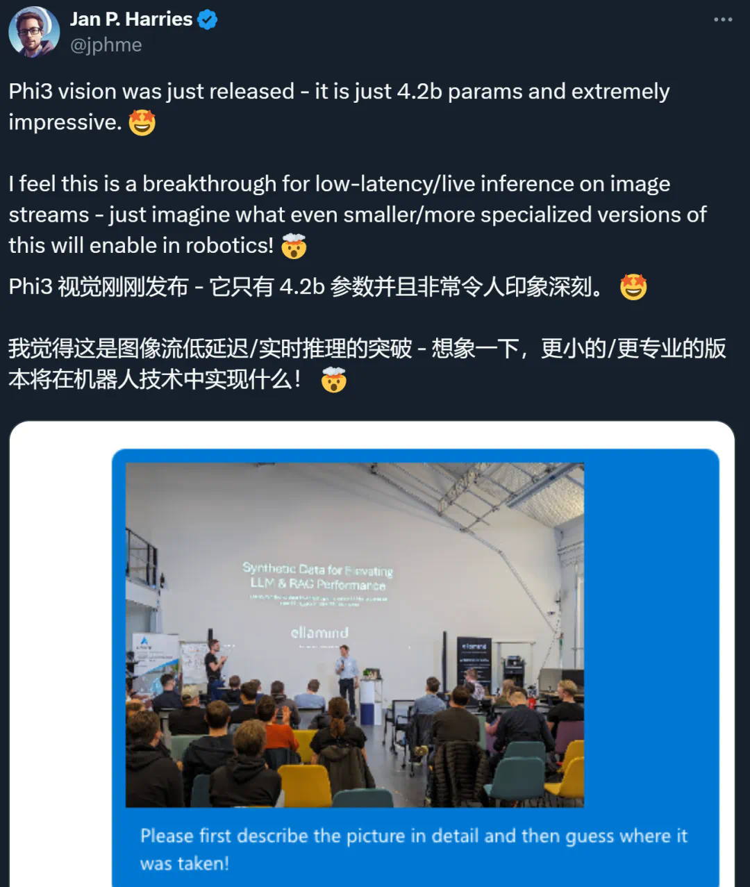 Phi-3-vision 是一个具有语言和视觉功能的 4.2B 参数多模态模型,支持 128K 上下文长度。 -