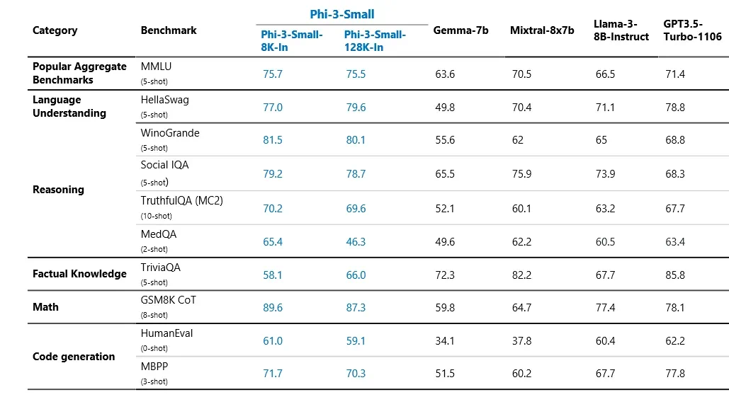 Phi-3-small 是一个具有 7B 参数的语言模型,支持 128K 和 8K 两种上下文长度。 -