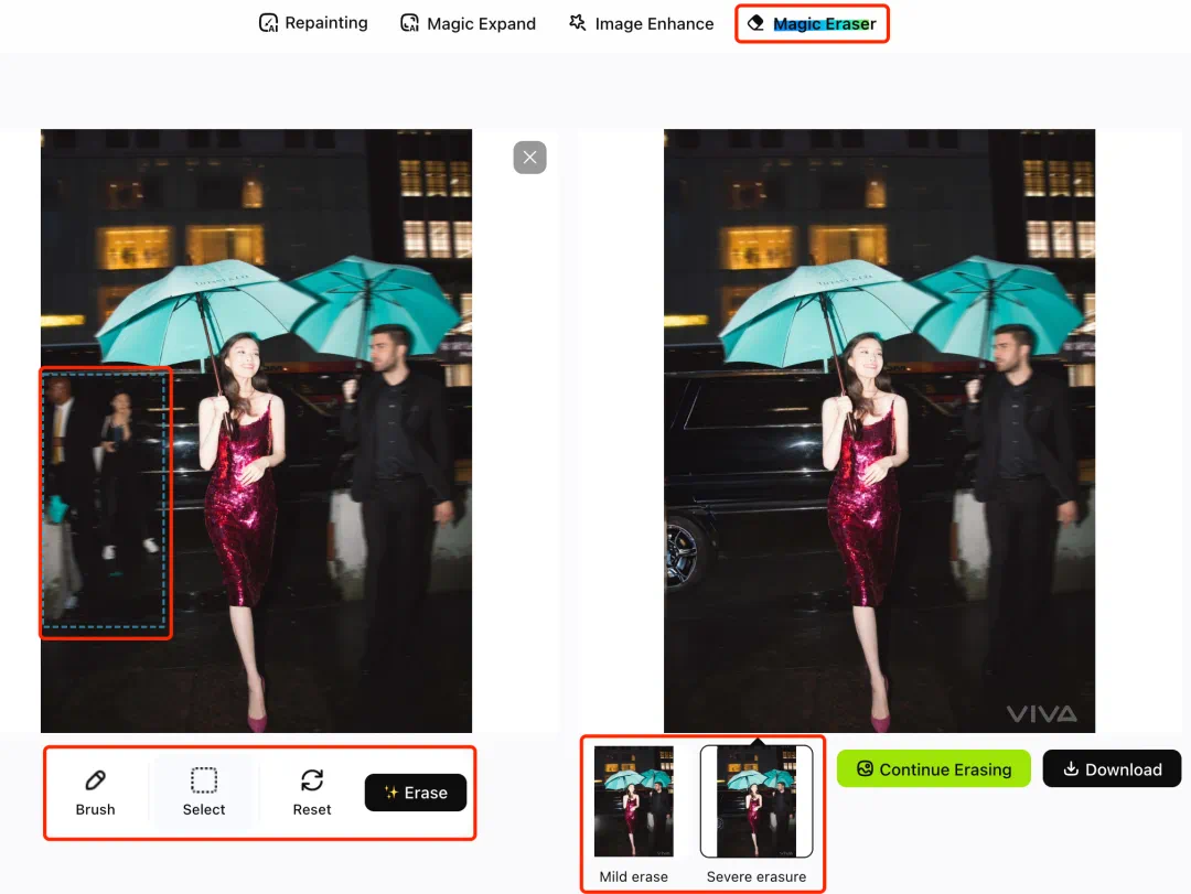 Viva 的「AI 消除」功能可解决这一烦恼。