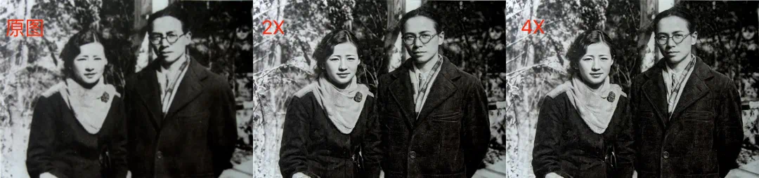 两相比较,2 倍效果的画质过于清晰,让人一眼就看出是 AI 生成的,而且五官还会变形;相反 4 倍效果带有斑驳噪点,显得更自然一些。