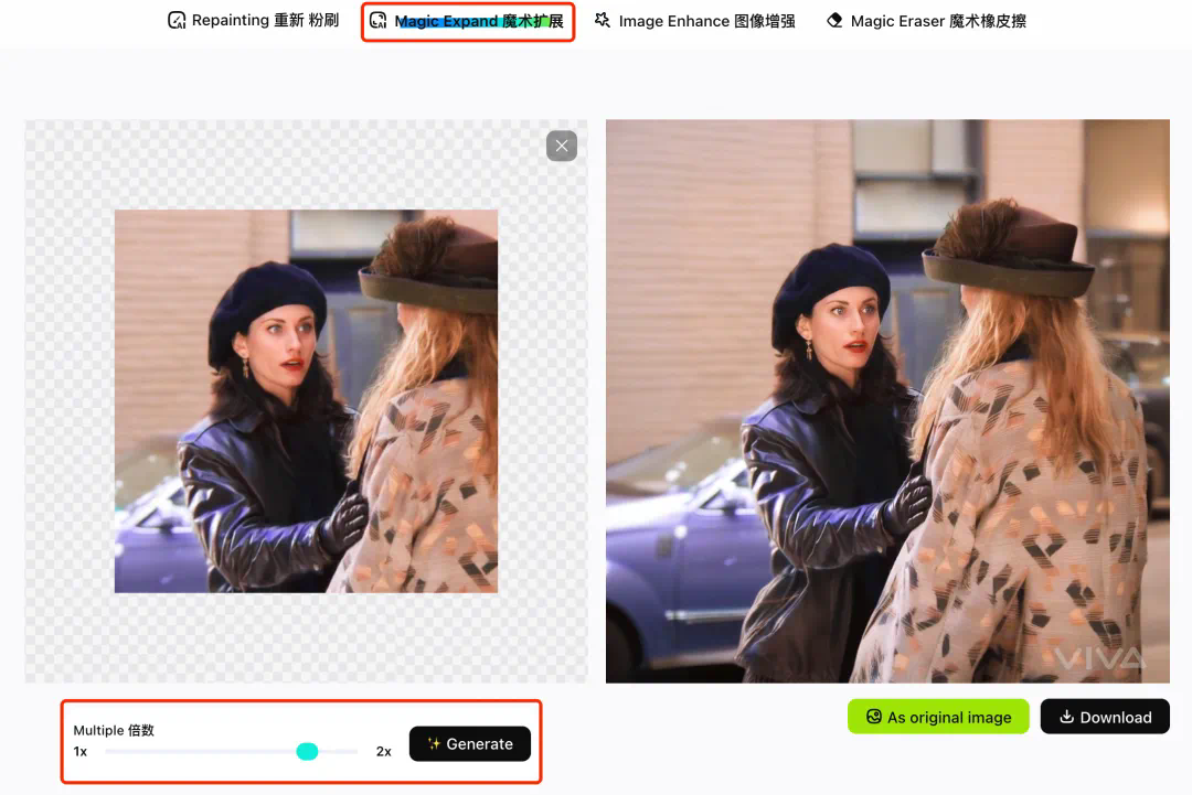 文章来源于互联网:AI生图、扩图、去水印……全免费!「Sora 平替」Viva 玩了把大的