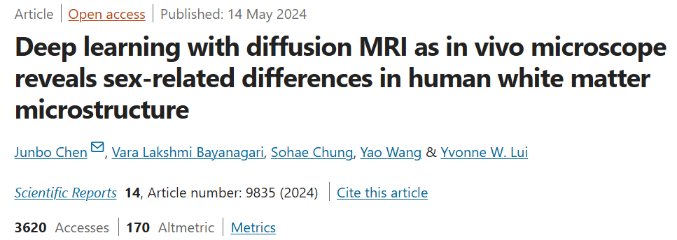 该研究以「Deep learning with diffusion MRI as in vivo microscope reveals sex-related differences in human white matter microstructure」为题,于 2024 年 5 月 14 日发布在《Scientific Reports》。