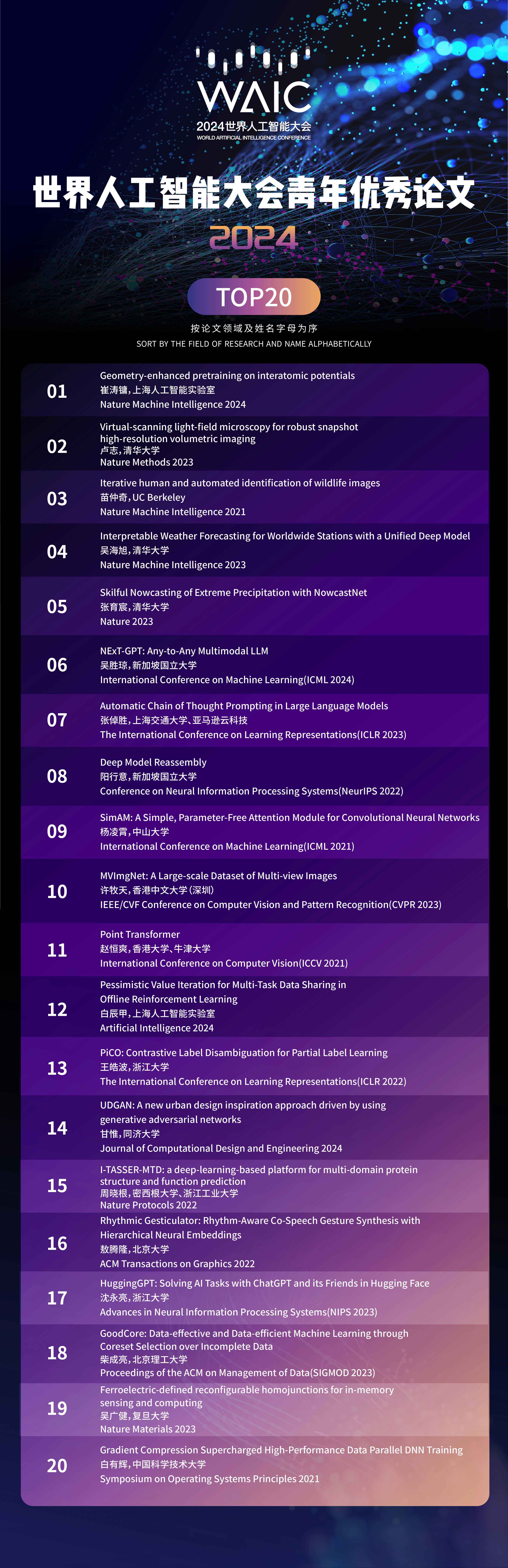 2024世界人工智能大会青年优秀论文奖将于7月世界人工智能大会上揭晓,敬请期待!