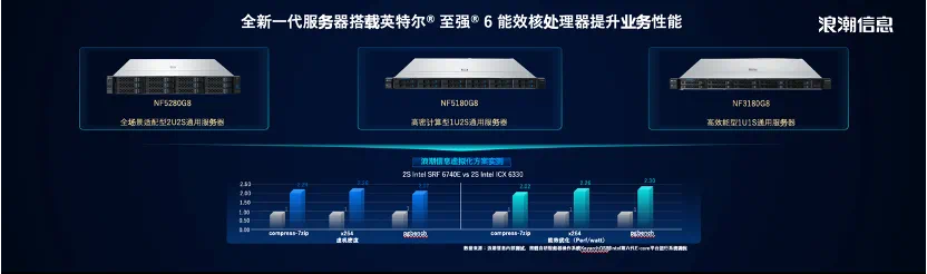 浪潮信息推出了采用英特尔® 至强® 6 能效核处理器的 G8 元脑服务器,涵盖全场景、高密计算和高能效三款通用服务器,以系统设计为核心,具备高效节能、敏捷开放、安全可靠和原生智能四大特性,相比 G6 平台性能提升 200%7 ,每单位能耗下性能提升 230%8 以上。