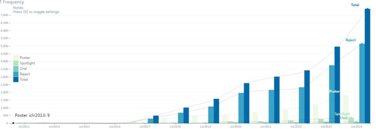 尽管与 NeurIPS(神经信息处理系统大会)和 ICML(国际机器学习大会)相比,ICLR 的年资尚浅,但其学术影响力和认可度正日益提升,现已与前两者一起被公认为机器学习领域的三大顶级会议,参会人数与投稿数量也逐年显著增加。