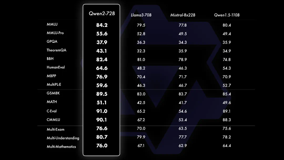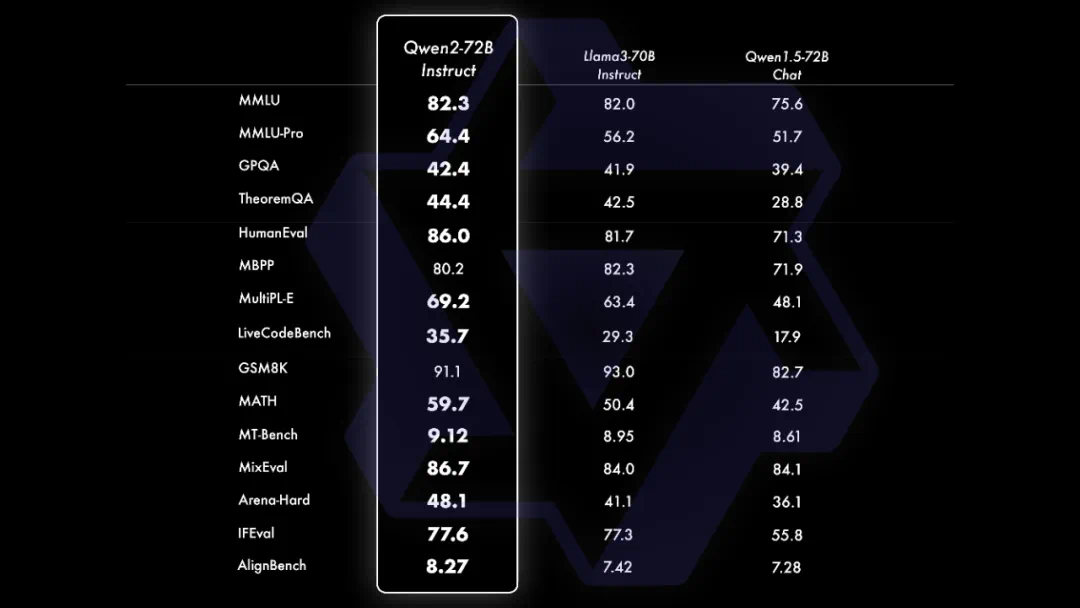 文章来源于互联网:阿里Qwen2正式开源,性能全方位包围Llama-3
