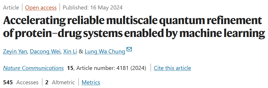 该研究以「Accelerating reliable multiscale quantum refinement of protein–drug systems enabled by machine learning」为题,于 2024 年 5 月 16 日发布在《Nature Communications》。