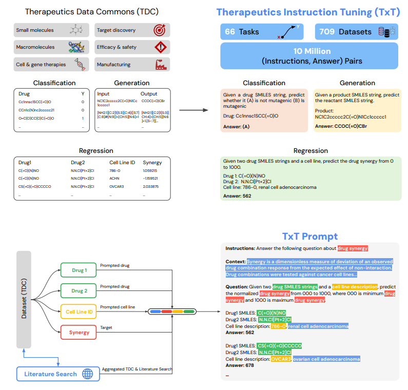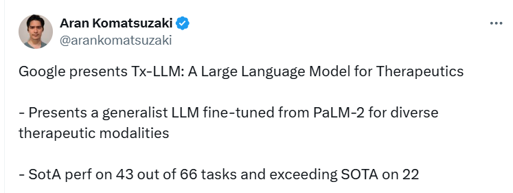 为了弥补这一差距,Google 团队提出了 Tx-LLM,这是一种通用大型语言模型(LLM),由 PaLM-2 微调而成,可编码有关各种治疗方式的知识。