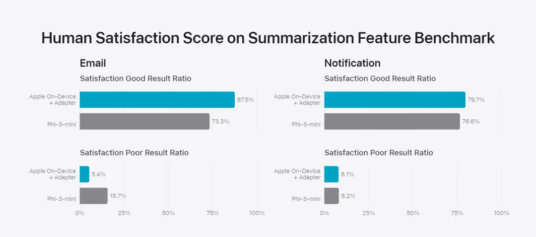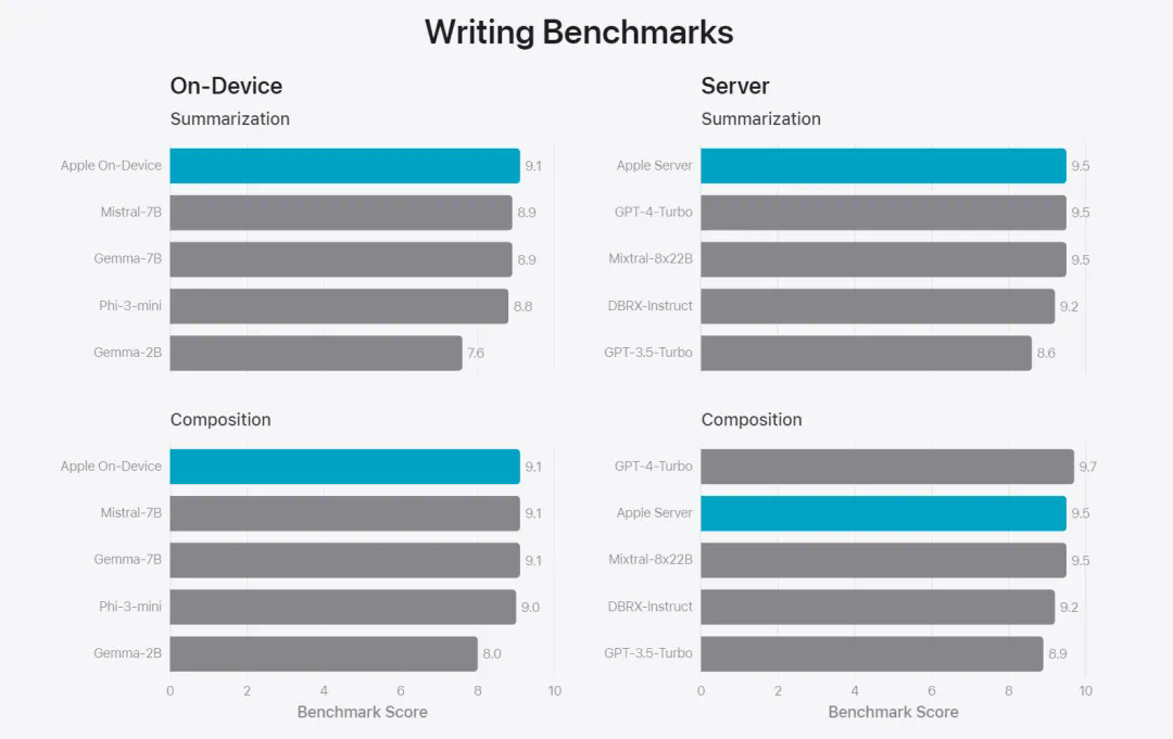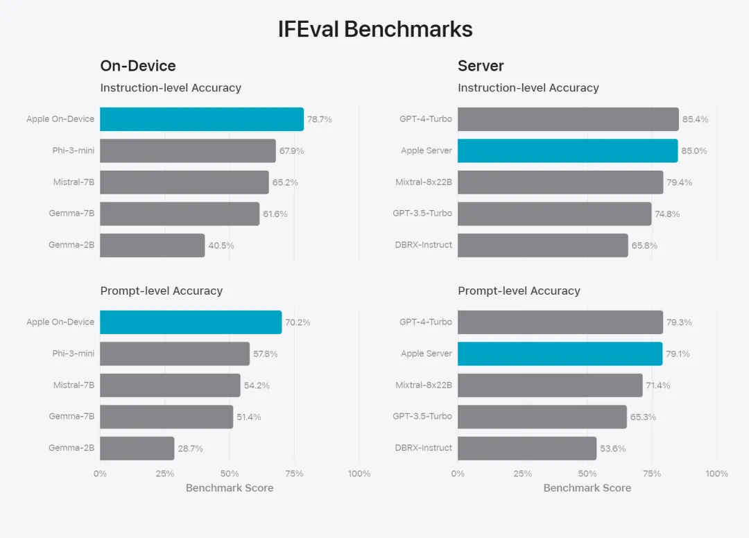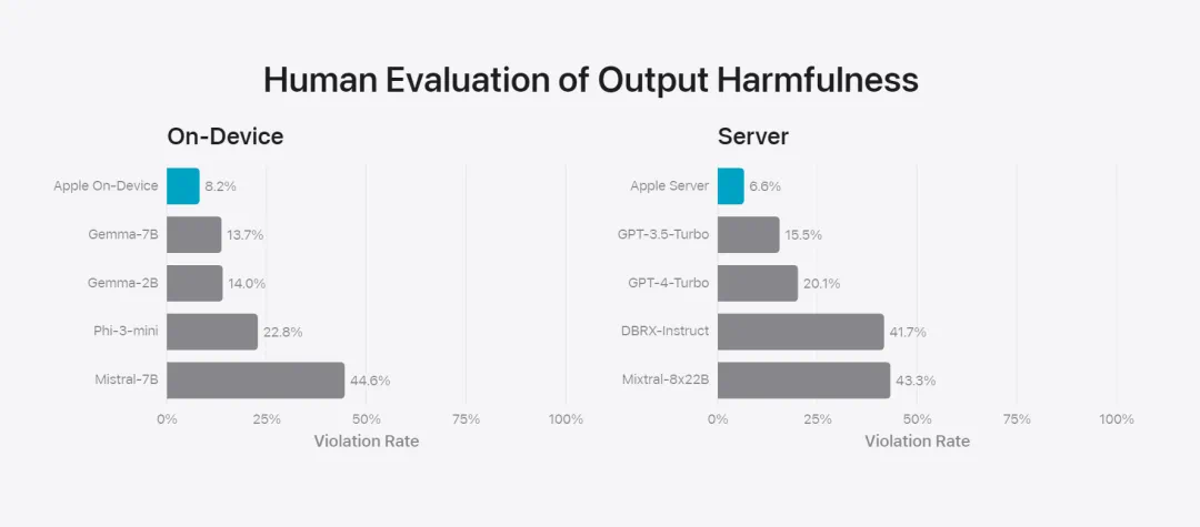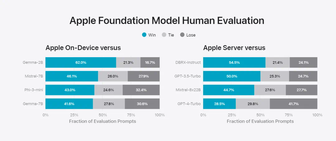 文章来源于互联网:苹果智能背后模型公布:3B模型优于Gemma-7B,服务器模型媲美GPT-3.5-Turbo