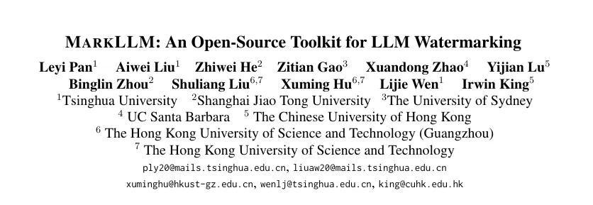 论⽂名称:MarkLLM: An Open-Source Toolkit for LLM Watermarking