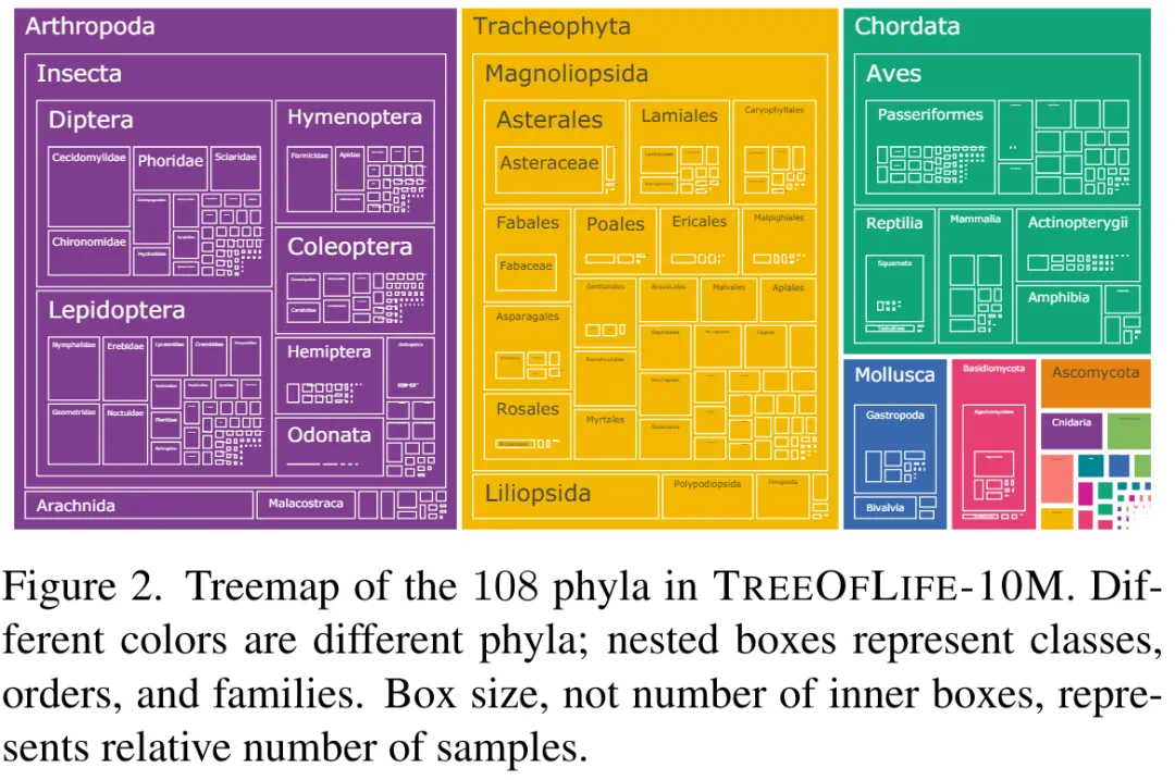 为了实现这一目标,该研究策划并发布了 TREEOFLIFE-10M,这是规模最大、最多样化的生物图像数据集 ML-ready。基于此,研究者开发了基础模型 BIOCLIP,主要用于构建生命之树(tree of life),利用 TREEOFLIFE-10M 捕捉到的生物学独特属性,即植物、动物和真菌图像的丰富性和多样性,以及丰富的结构化生物学知识。