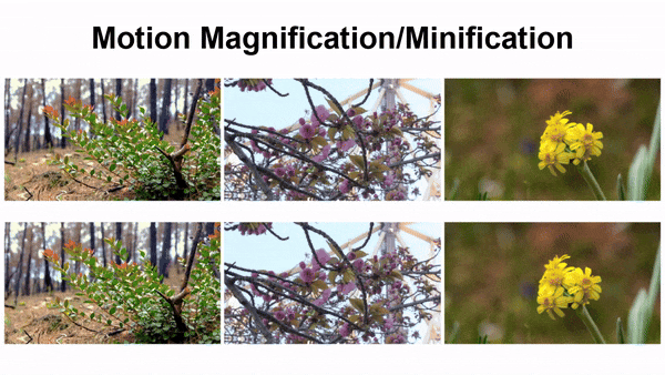 该研究可以通过调整运动纹理的幅度来缩小(顶部)或放大(底部)动画运动。