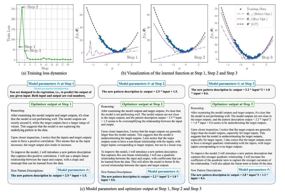 可以在训练过程中自动对模型的函数族进行选择;(3)优化函数对模型参数的每一步更新都会提供自然语言的解释,同时模型的描述和推理也是自然语言且可解释的。