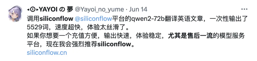 SiliconCloud 一经发布,不少开发者就在各大社交平台分享了使用体验。部分 “自来水” 用户是这样评价的:
