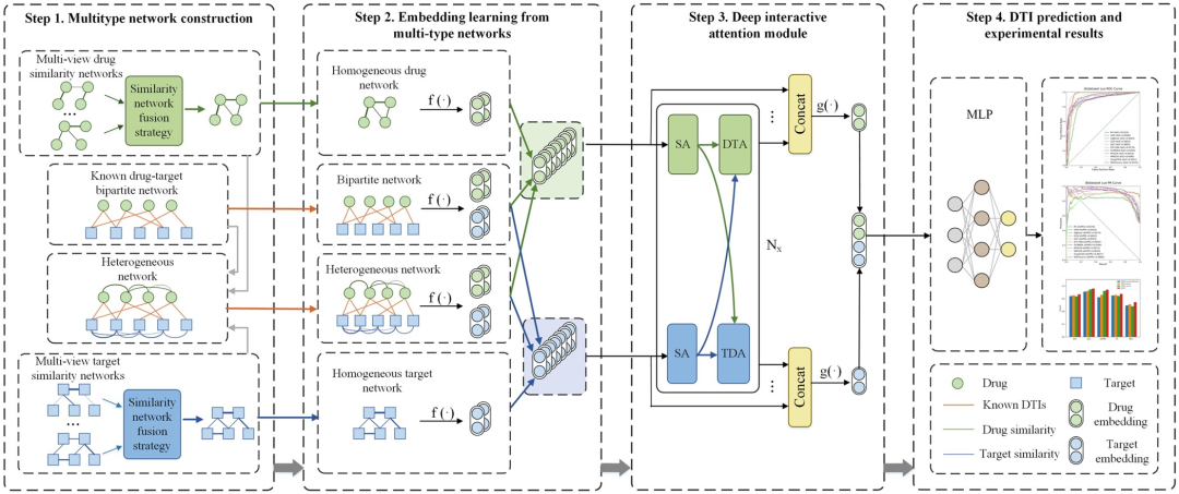 受多视角相似性网络融合策略和深度交互式注意力机制的启发,郑州大学团队提出了一种称为 MIDTI 的预测 DTI 的新方法。
