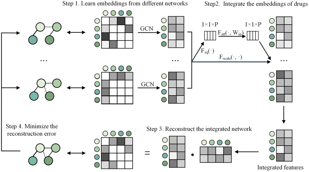 图示:多视角药物相似性网络融合策略的四个步骤。(来源:论文)