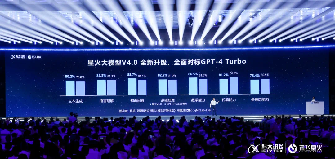 文章来源于互联网:国产大模型新高度!讯飞星火4.0发布:整体超越GPT-4 Turbo,8个国际权威测试集测评第一
