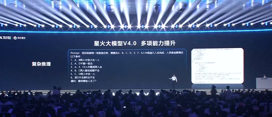 最后,星火大模型V4.0能够搞定更加复杂的逻辑推理、空间推理问题。