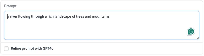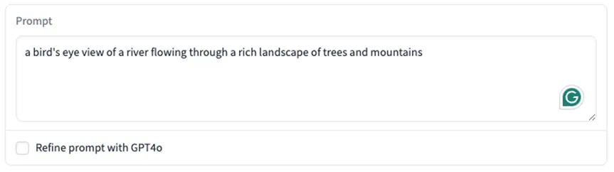 很快生成就完成了,耗时约 40 秒。生成结果整体还不错,有河有山有树木,和指令符合。但是我们期待的是雄鹰从高处俯瞰的效果。
