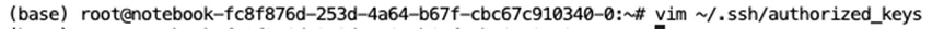 不过,我们发现,这个 gradio 是默认在服务器的 http://0.0.0.0:7860 上跑,要想在自己本地的浏览器用,得先把自己的 ssh 公共秘钥加入到潞晨云的机器中。这一步也很简单,只要进入下面这个文件,粘贴本地机器的秘钥进去就行。