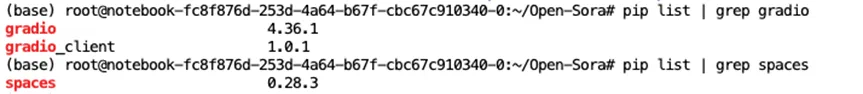 由于我们使用的是 Open-Sora 专属镜像,我们无需额外安装任何环境。最耗时的这一步被完美地解决了。