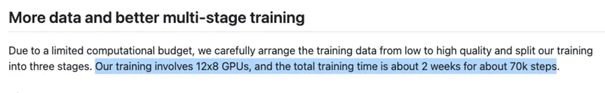 不过,从报告中看,他们的训练使用了 12 台 8 卡机器,所以如果我们用潞晨云平台训练和第三阶段相同的数据量,大约需要: