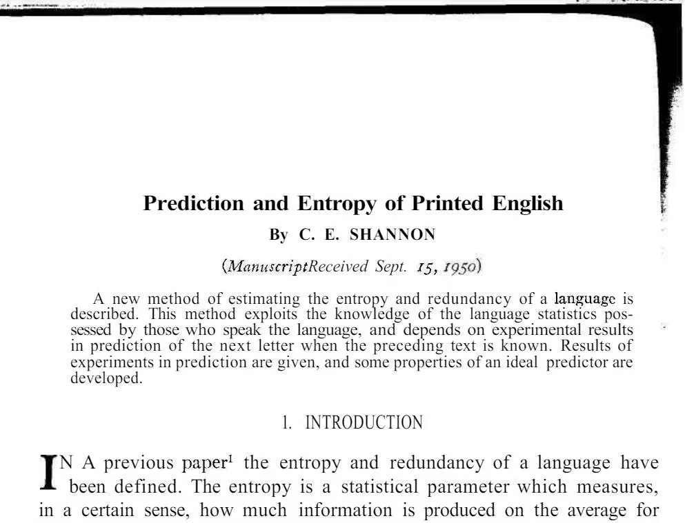 文章来源于互联网:73年前,香农已经给大模型发展埋下一颗种子