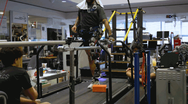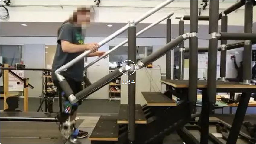 在该工作中,为了测试仿生腿,研究者要求患者以不同的速度在平地上行走、上下斜坡和楼梯,并绕过障碍物。