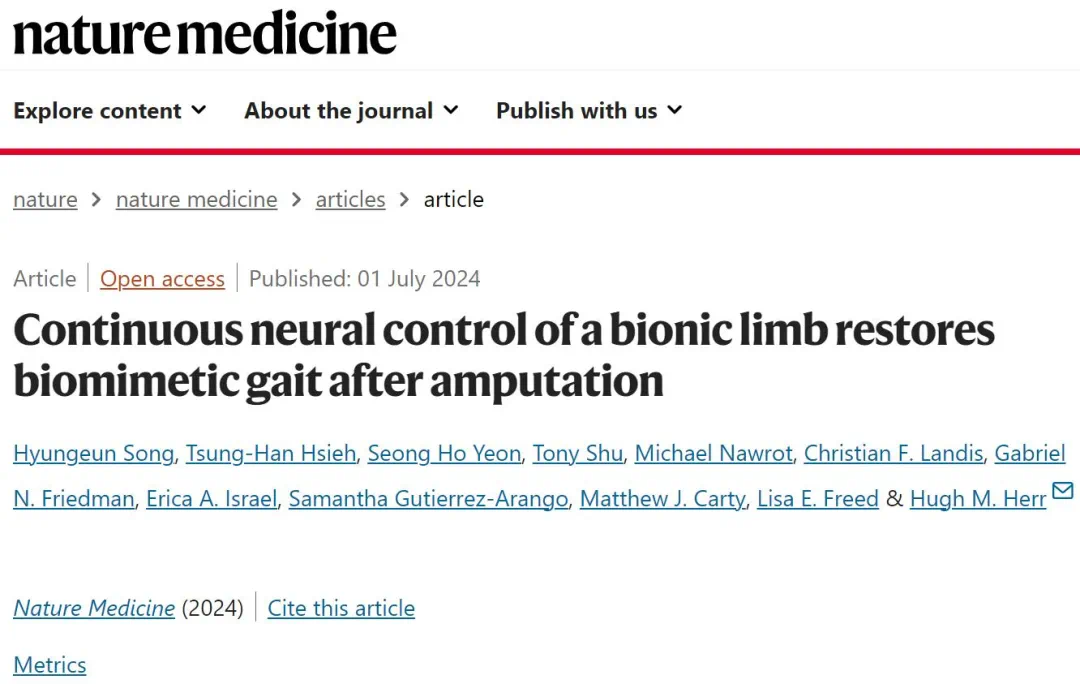 论文标题:Continuous neural control of a bionic limb restores biomimetic gait after amputation