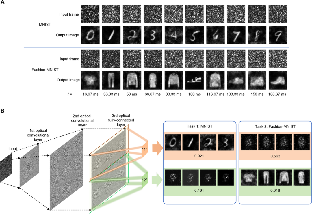 图示:可训练卷积 ONN 的动态和多任务性能的演示。(来源:论文)