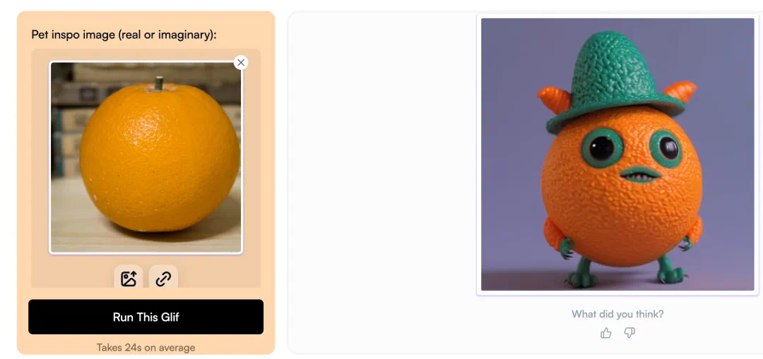 我们随便上传一张图片,比如橘子、香蕉、西瓜、菠萝等,它立马整出一个「水果特工队」。
