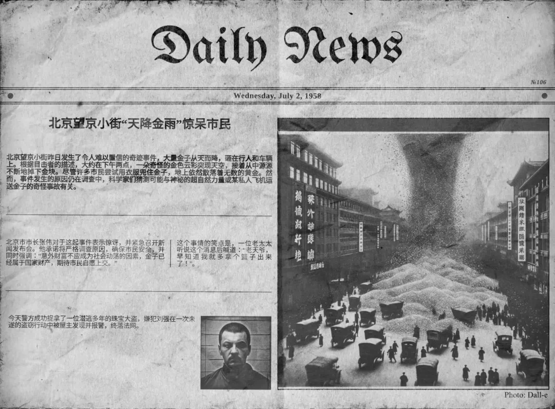 短短几秒钟时间,就能得到一张图文并茂、皱皱巴巴的旧报纸。有意思的是,报纸左下角总有一个倒霉的江洋大盗被缉拿归案。