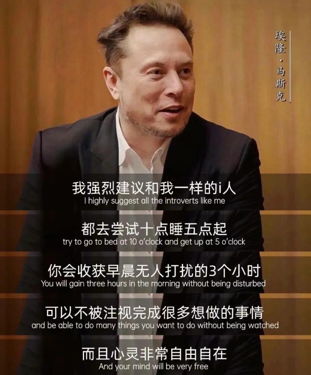细想一下,老马这个大忙人,每天工作 16 个小时,比生产队的驴还拼命,怎么可能会说出「十点睡五点起」的话?