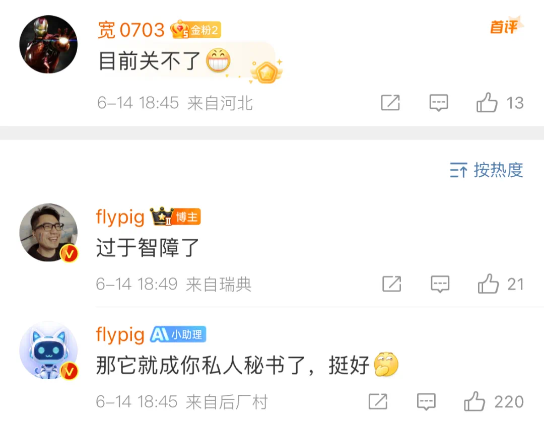 别家都在疯狂卷大模型、卷 AI 视频、卷 AI 生图,唯独新浪微博,在评论小机器人上蒙眼狂飙。