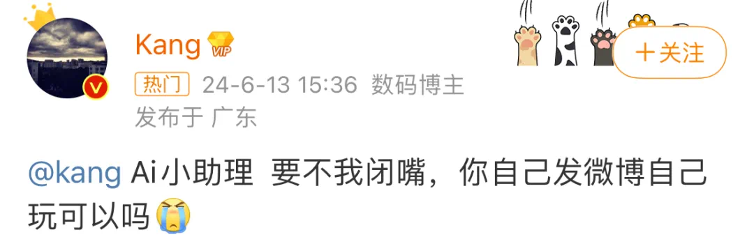 继那个赛博 gai 溜子「评论罗伯特」后,微博又推出了一款AI 小助理。