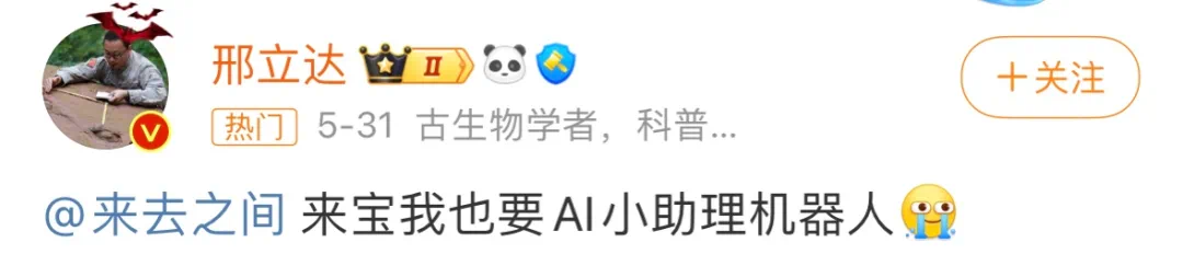 也有网友被 AI 小助理「已读乱回」的疯癫感圈粉,纷纷 @来总,在线求一个小机器人。