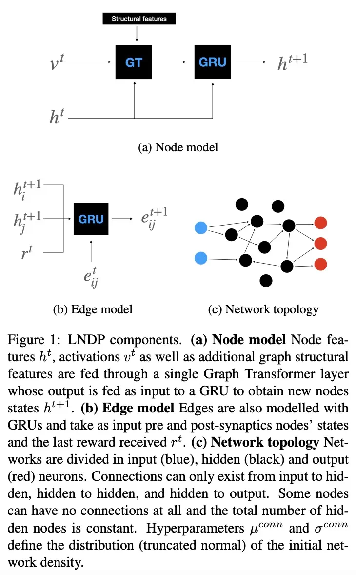 研究团队基于 Graph Transformer 层(Dwivedi and Bresson, 2021)提出了一种 LNDP 实例,并在一组强化学习任务中使用协方差矩阵自适应进化策略(CMA-ES)优化了 LNDP。