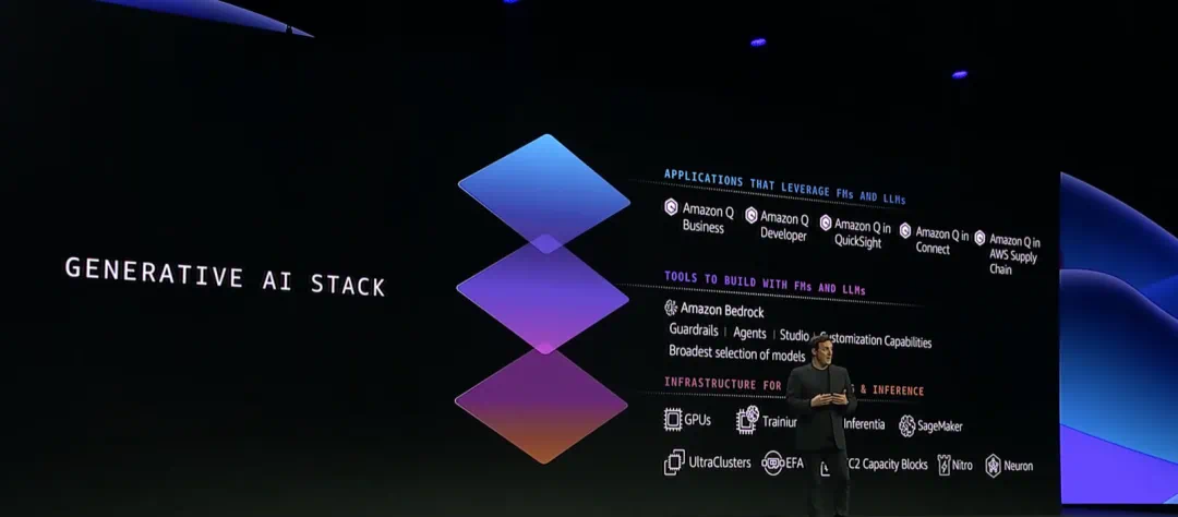 在这场亚马逊云科技纽约峰会上,从基础设施层的 GPU 算力、基础模型的工具层再到应用层,亚马逊云科技的三层生成式 AI 技术栈迎来了一次焕新升级。