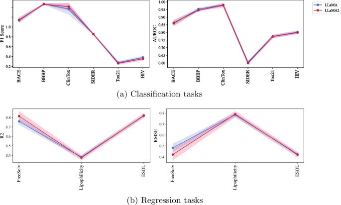 该团队特别推荐 Llama 模型而不是 GPT,因为它们在从 SMILES 字符串生成分子嵌入方面具有卓越的性能。这些发现表明 Llama 在预测分子特性和药物相互作用方面可能特别有效。