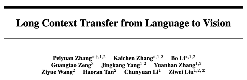 本文主要作者来自 LMMs-Lab 团队与新加坡南洋理工大学。共同一作中,张培源是南洋理工大学研究助理,张恺宸是南洋理工大学四年级本科生,李博为南洋理工大学三年级博士生,指导教师为 MMLab@NTU 刘子纬教授。LMMs-Lab 是一个由学生、研究人员和教师组成的团队,致力于多模态模型的研究,主要研究方向包括多模态模型的训练与全面评估,此前的工作包括多模态测评框架 lmms-eval 等。