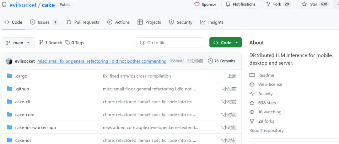 上述功能的实现,离不开一个名为 Cake 的 Rust 框架。Cake 可以完成大模型(例如 Llama3)的分布式推理,旨在将消费级硬件组合成异构集群,其中消费级硬件采用多种操作系统,包括:iOS、Android、macOS、Linux 和 Windows,从而使 AI 更易于访问。