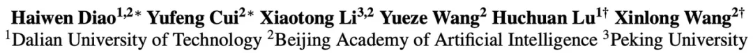一作刁海文,是大连理工大学博士生,导师是卢湖川教授。目前在北京智源人工智能研究院实习,指导老师是王鑫龙博士。他的研究兴趣是视觉与语言,大模型高效迁移,多模态大模型等。共同一作崔玉峰,毕业于北京航空航天大学,是北京智源人工智能研究院视觉中心算法研究员。他的研究兴趣是多模态模型、生成模型和计算机视觉,主要工作有 Emu 系列。
