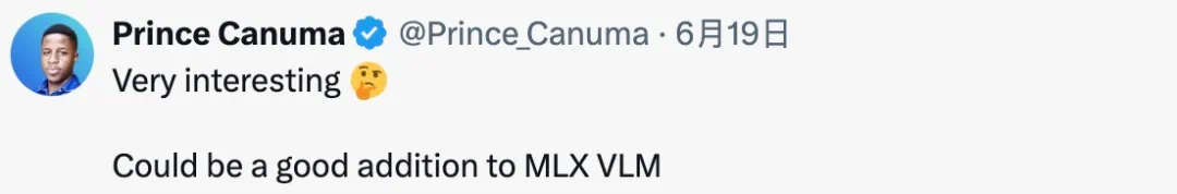 苹果机器学习工程师 Prince Canuma 表示,EVE 架构非常有趣,对 MLX VLM 项目集是一个很好的补充。