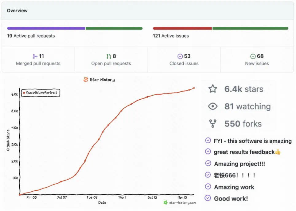 文章来源于互联网:快手开源LivePortrait,GitHub 6.6K Star,实现表情姿态极速迁移
