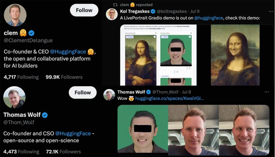 HuggingFace Space一键在线体验:https://huggingface.co/spaces/KwaiVGI/LivePortrait