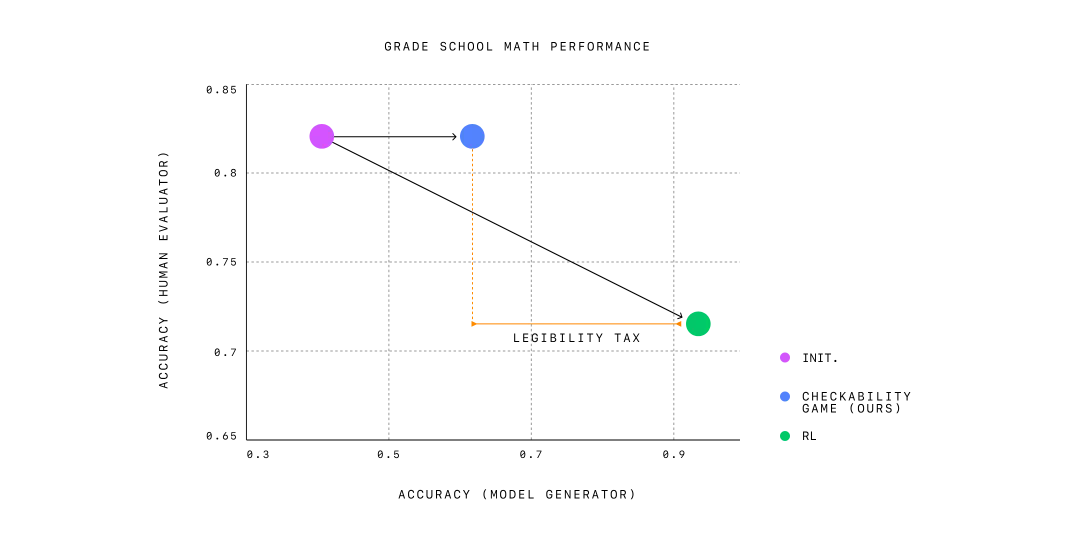 OpenAI 提出的可检查博弈方法平衡了这两者,在保持高可读性的同时保持适度的准确性。